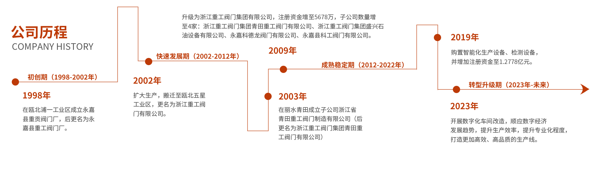 浙江重工閥門集團始創(chuàng)于1999年,總部座落在溫州永嘉甌北五星工業(yè)區(qū),總占地面積23800多平方,注冊資金1.2778億元,集團旗下?lián)碛?家子公司,其中全資子公司3家,控股公司2家。公司采用先進的管理模式,實行產(chǎn)品專業(yè)化分類生產(chǎn)和銷售,提高產(chǎn)品質(zhì)量。主要生產(chǎn)基地分布在:浙江溫州、麗水和青田等地,是一家集產(chǎn)品研發(fā)、設(shè)計、制造與銷售為一體的專業(yè)閥門企業(yè),在溫州甌北總部設(shè)立:辦公中心、科研中心、銷售中心、質(zhì)控中心和全過程網(wǎng)絡(luò)管理中心……